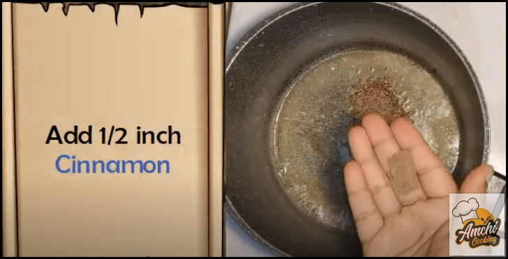 Step 3: To a pan, add 1tbsp butter or oil, 1tbsp cumin seed (jeera), 1 bay leaf, 1/2 inch cinnamon.