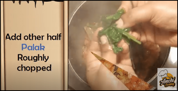 Step 9: Add ground spinach puree, saute well till raw smell goes off.