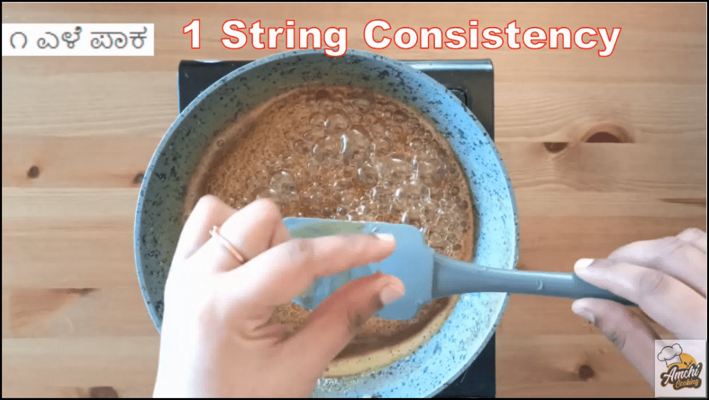 Step 6: You can see 1 string consistence after 3-5 minutes of continuous stirring.