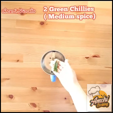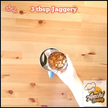 Step 1: Grind 2 green chillies, 3tbsp Jaggery, 1 banana, half cup coconut using 0.5 cup water to thick paste.