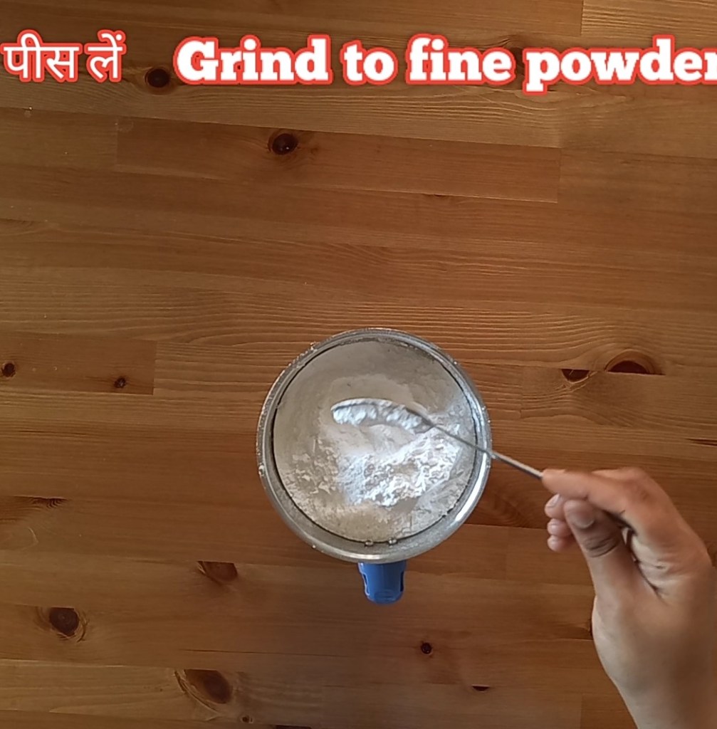 Step 2: Add 5 cups Sugar into it. Grind batchwise if jar is small.
