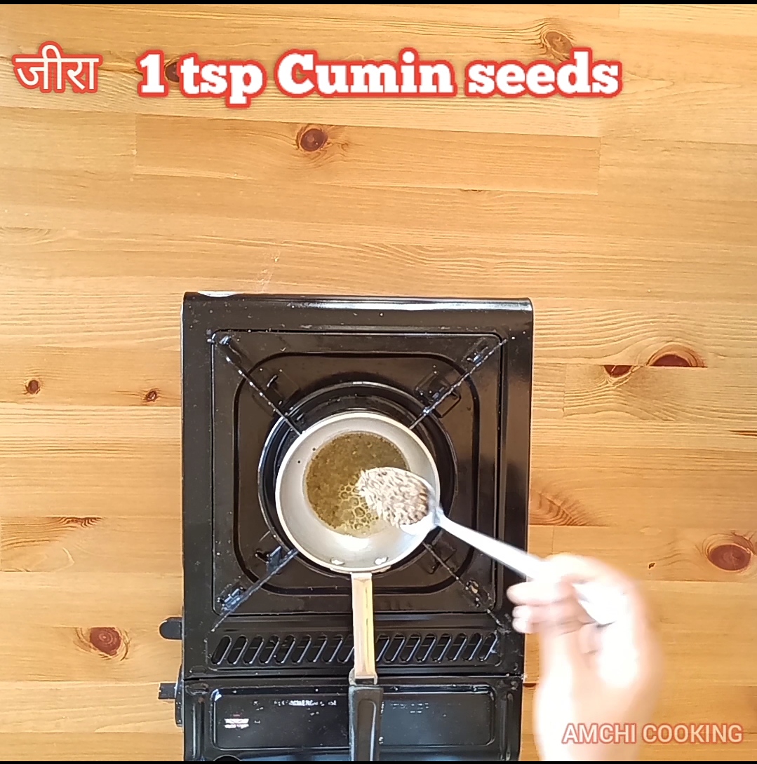Step 5: Seasoning: 1tsp Oil, 1tsp Mustard seeds, 1 tsp cumin seeds, few curry leaves, 1 red chilli, 2 pinches asafoetida.