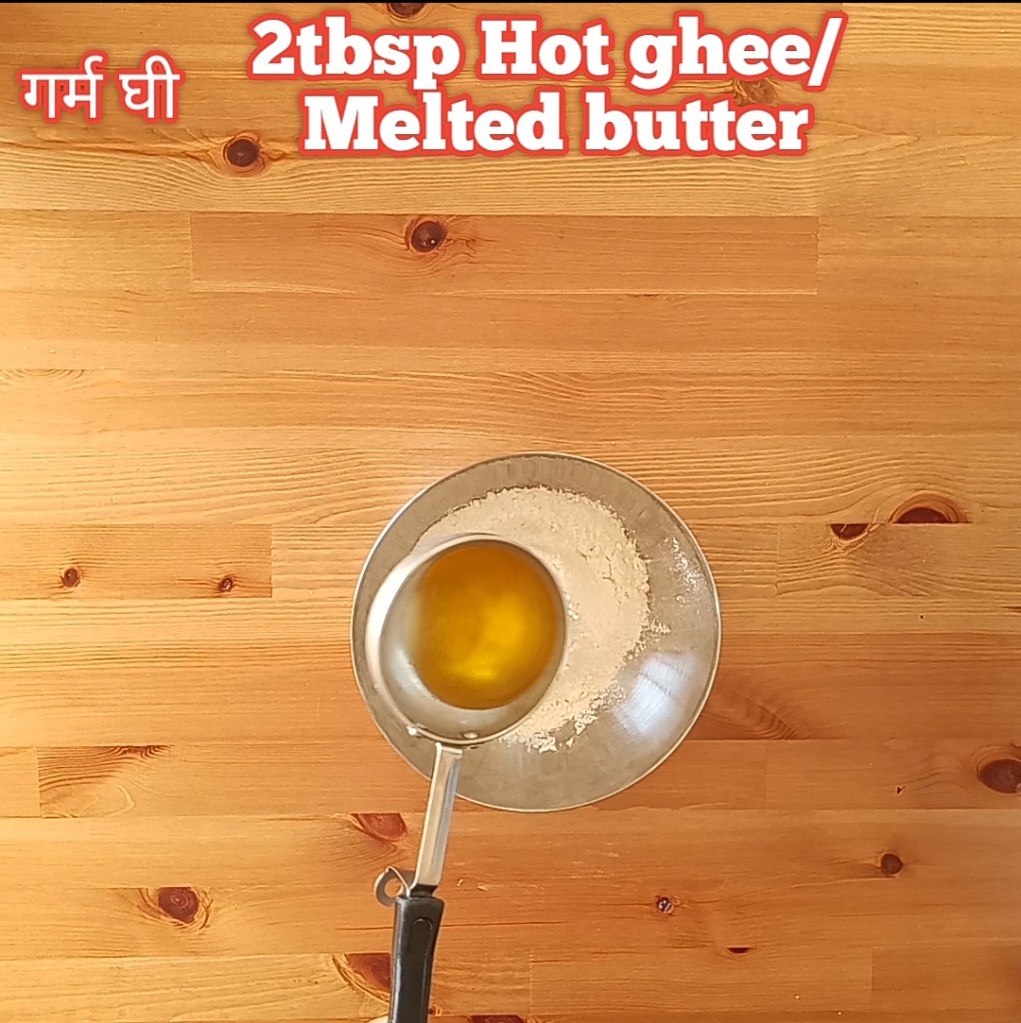Step 4: Add 2 tbsp Hot ghee/ melted butter so the flour holds a shape.