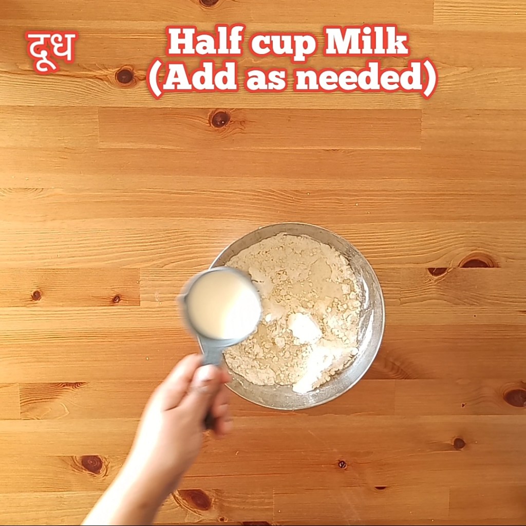 Step 6: Add less milk batchwise and knead it to a stiff dough.